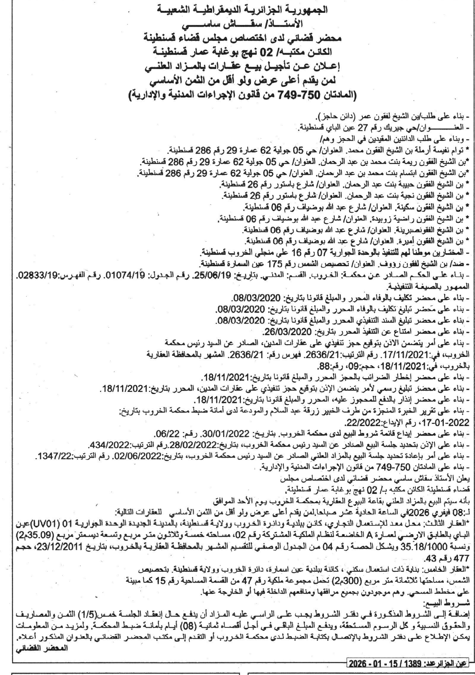 | Objet: Vente des biens immobiliers | |