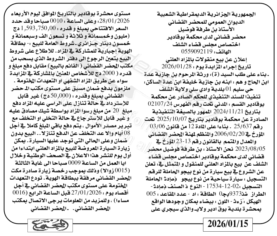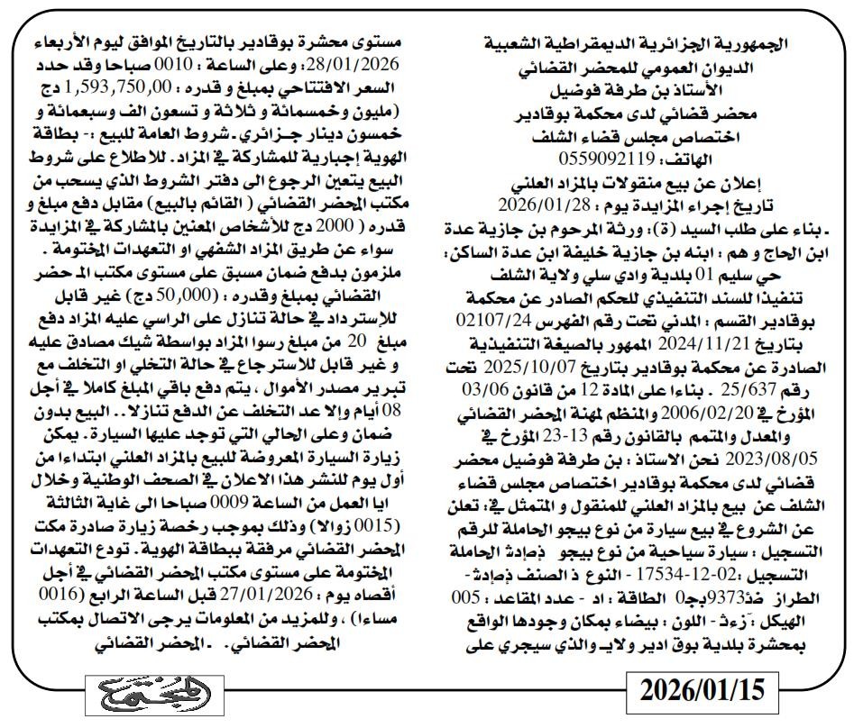 | Date Publication : 15/01/2026 | |