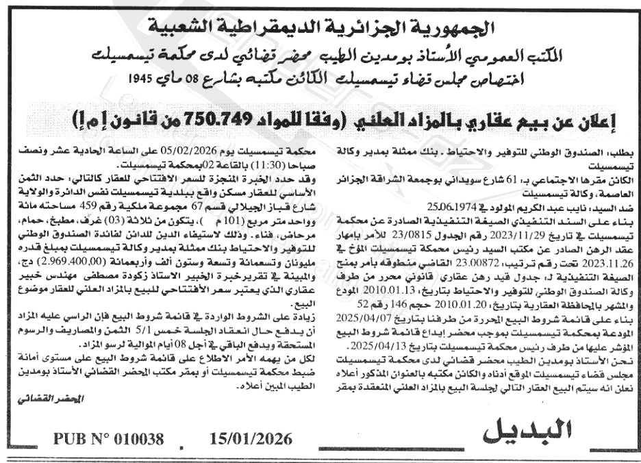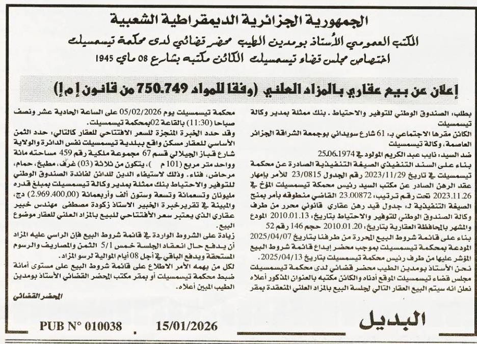 | Date Publication : 15/01/2026 | |