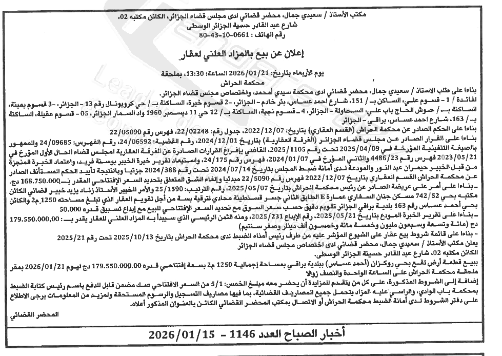| Paru dans le journal : اخبار الصباح | |