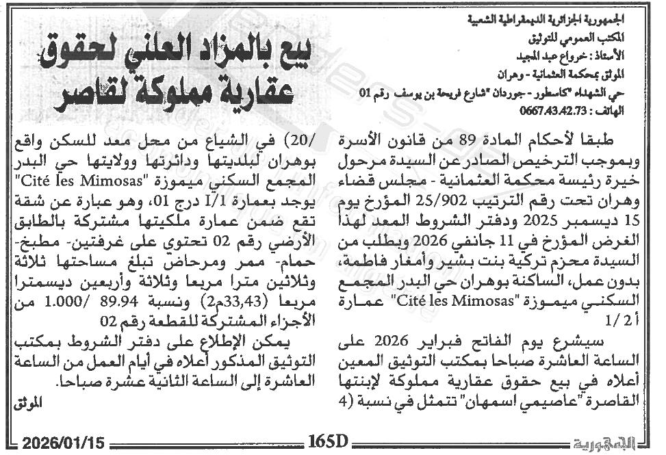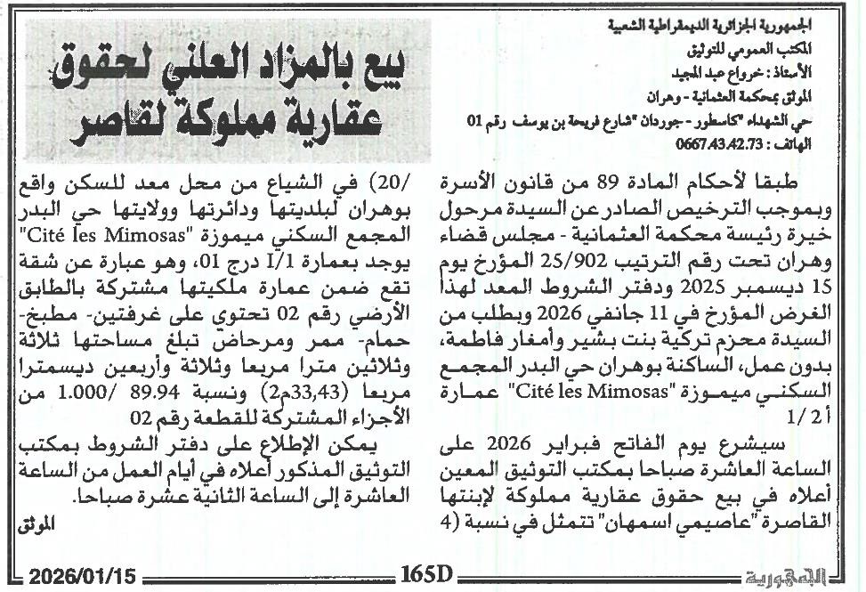Il sera procédé à la vente au plus offrant et dernier enchérisseur le :