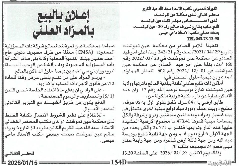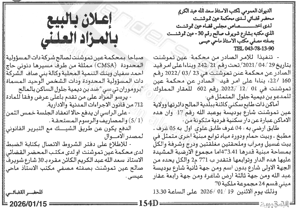 Il sera procédé à la vente au plus offrant et dernier enchérisseur le :