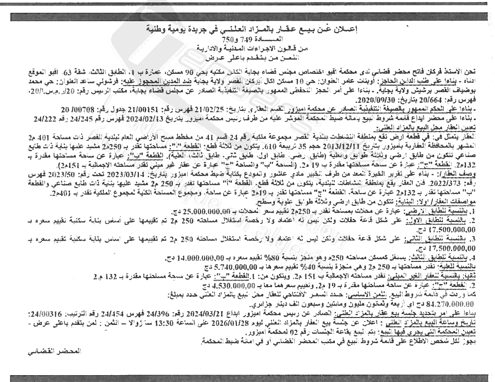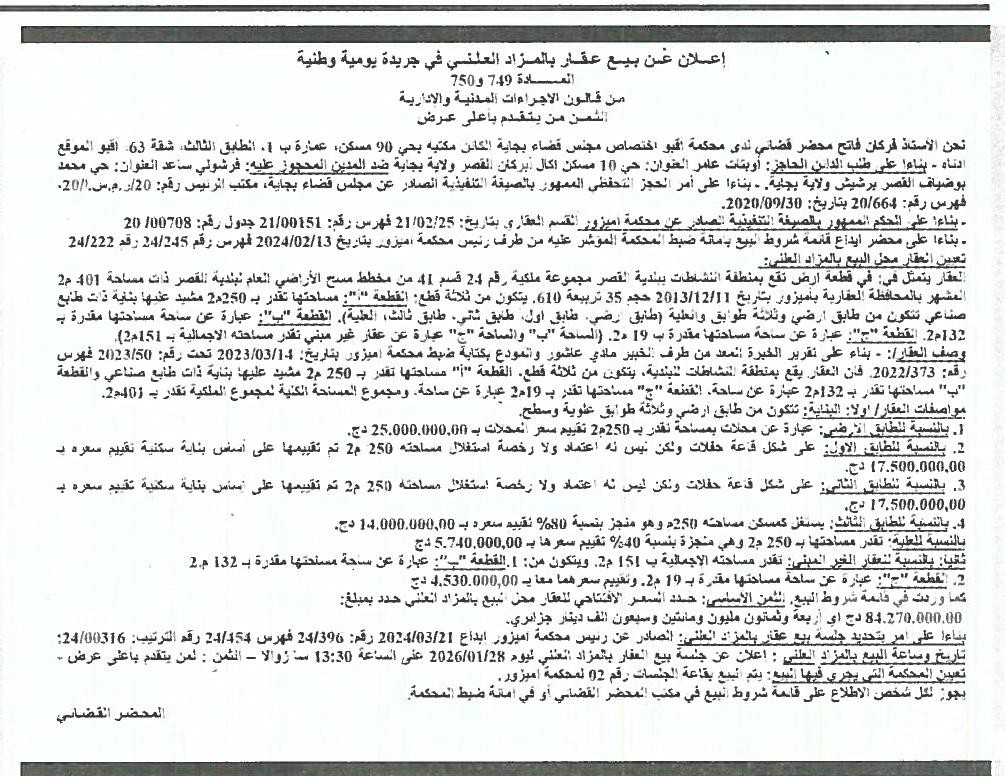 | Objet: Vente des biens immobiliers | |