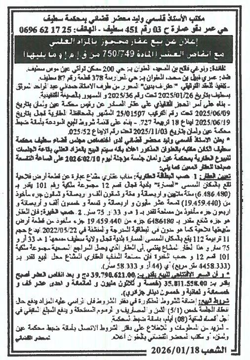 Il sera procédé à la vente au plus offrant et dernier enchérisseur le :
