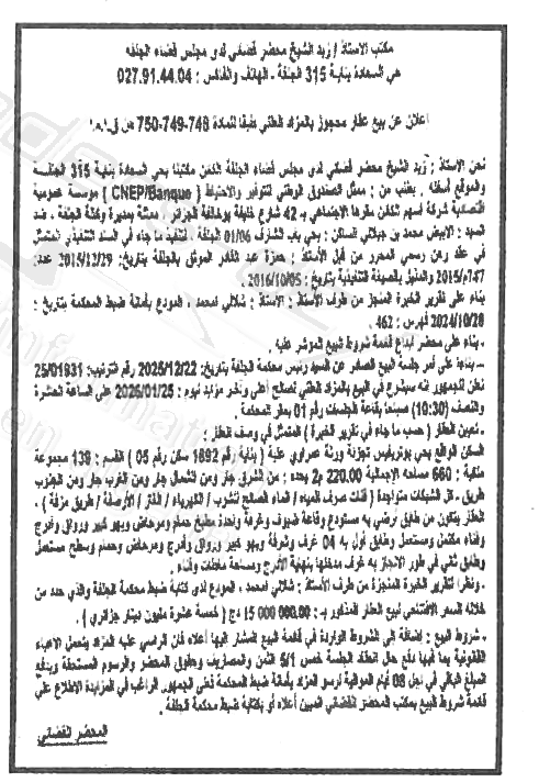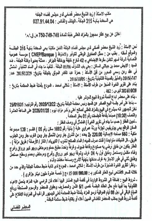 | Objet: Vente d'un immobilier | |