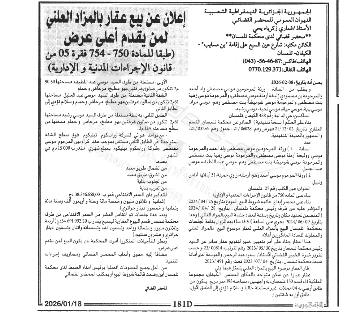 Il sera procédé à la vente au plus offrant et dernier enchérisseur le :