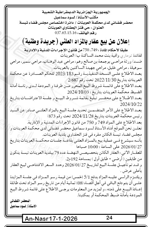 | Paru dans le journal : النصر | |