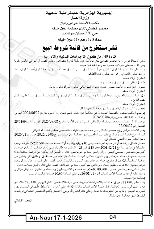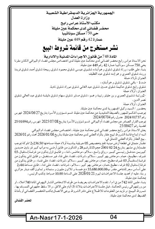 Il sera procédé à la vente au plus offrant et dernier enchérisseur le :