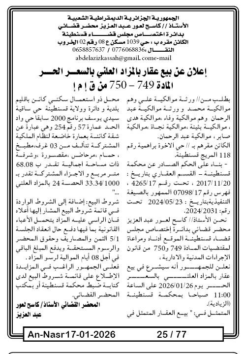 | Paru dans le journal : النصر | |