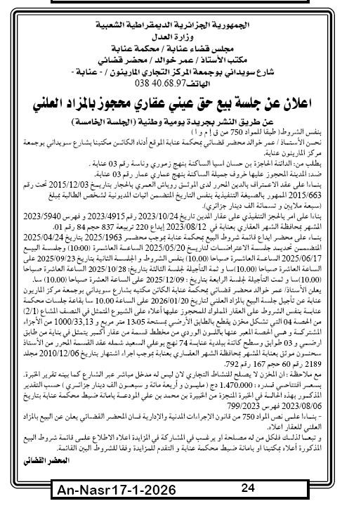 | Paru dans le journal : النصر | |