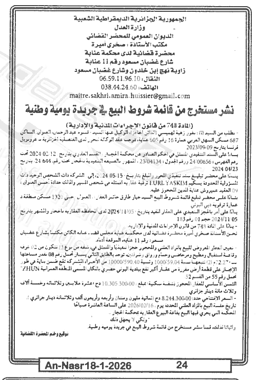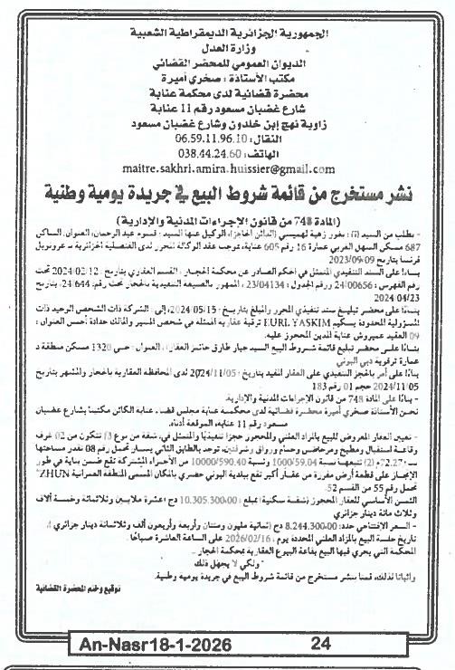 | Paru dans le journal : النصر | |