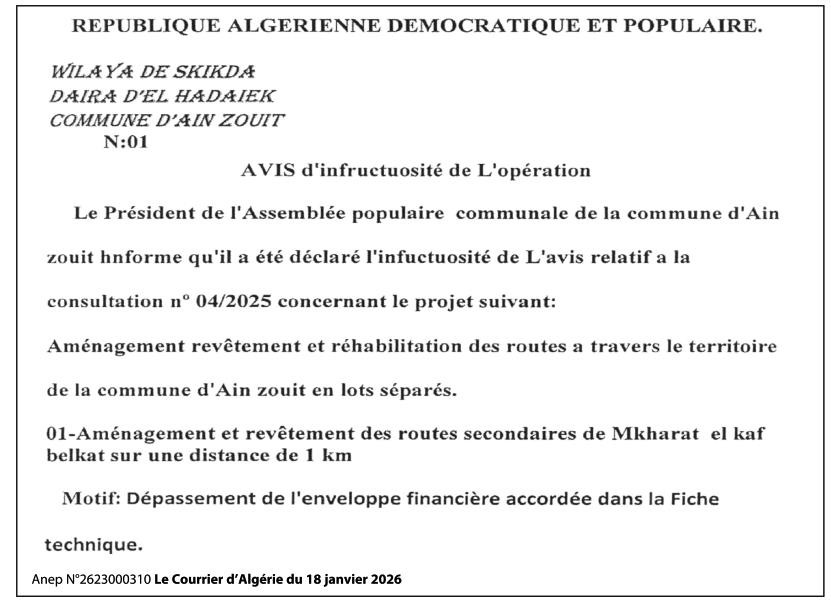 | (*) LA DATE EST DONNÉE À TITRE INDICATIF, VEUILLEZ LA VÉRIFIER LORS DU RETRAIT DU CAHIER DES CHARGES OU AUPRÈS DE L\'ÉMETTEUR | |