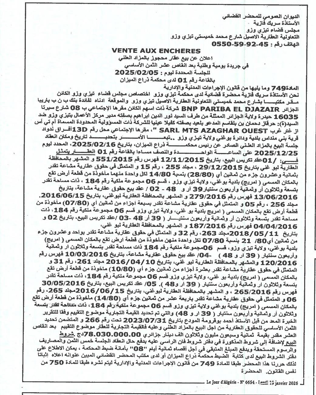 Il sera procédé à la vente au plus offrant et dernier enchérisseur le :