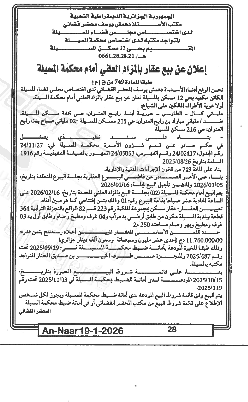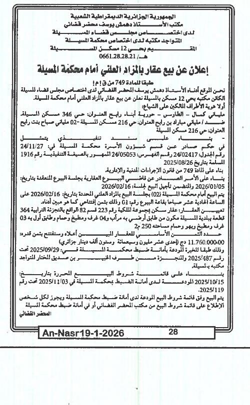 | Wilaya : MSila | |