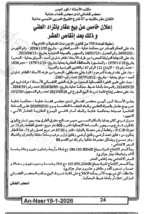 | Paru dans le journal : النصر | |