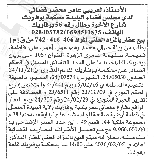 Il sera procédé à la vente au plus offrant et dernier enchérisseur le :