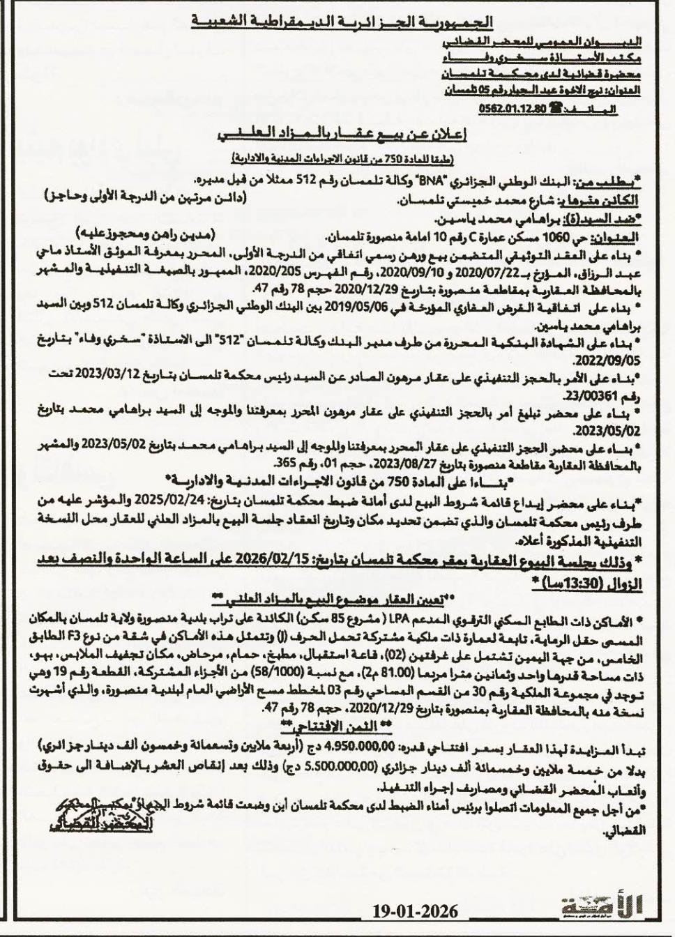 | Date Publication : 19/01/2026 | |