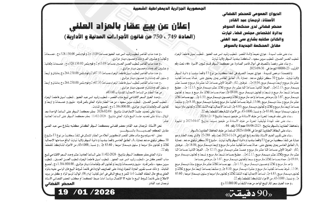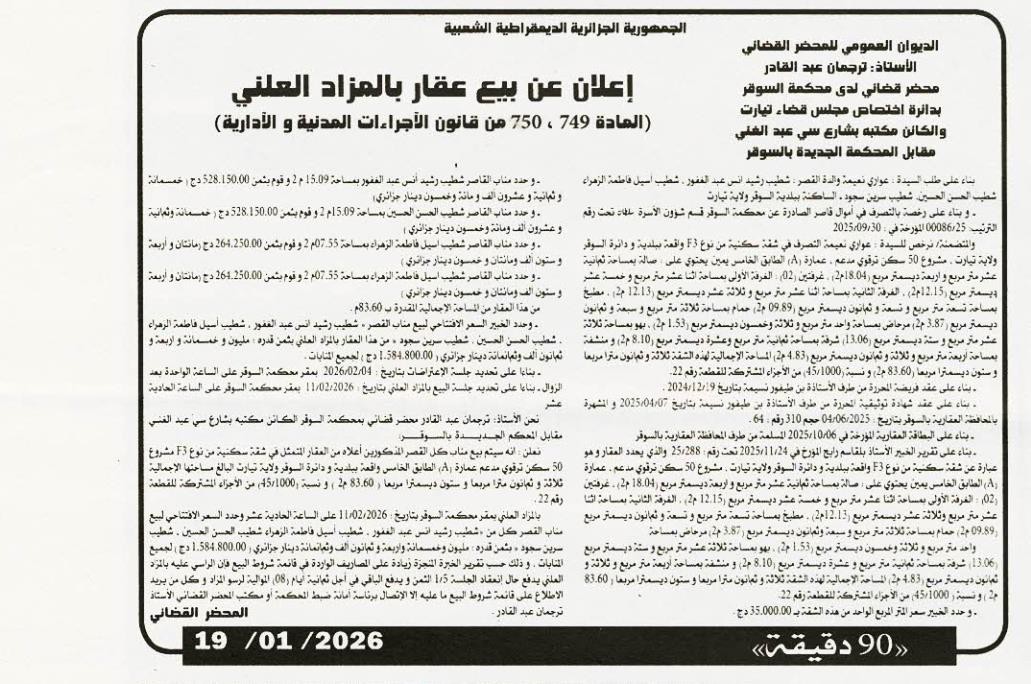 Il sera procédé à la vente au plus offrant et dernier enchérisseur le : 11/02/2026';