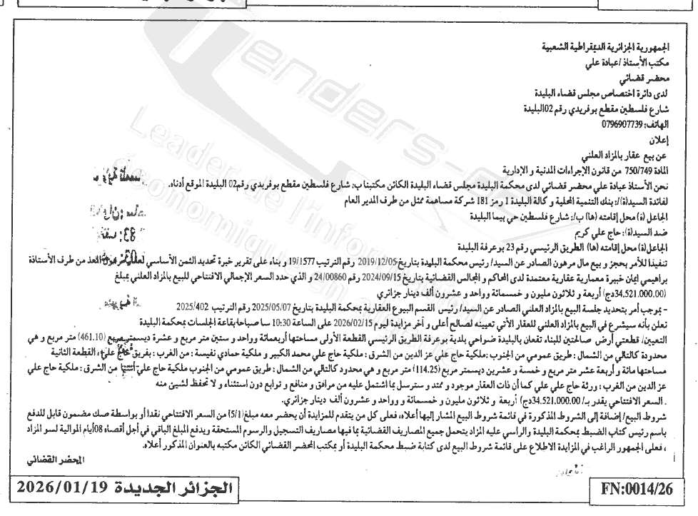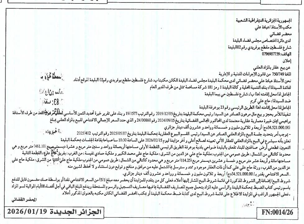 Il sera procédé à la vente au plus offrant et dernier enchérisseur le :
