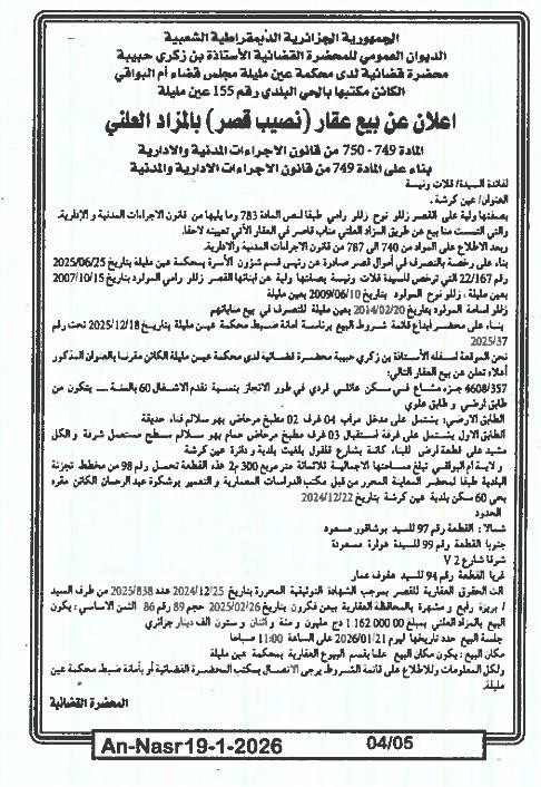 Il sera procédé à la vente au plus offrant et dernier enchérisseur le :