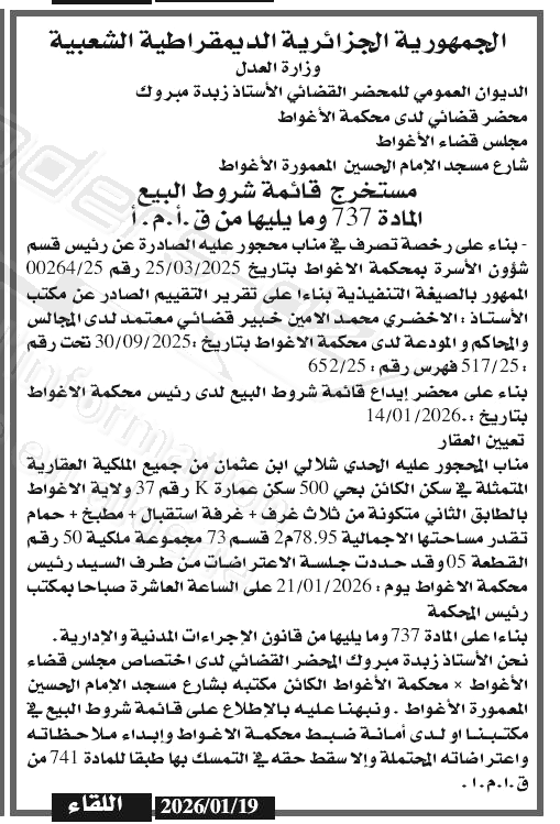 Il sera procédé à la vente au plus offrant et dernier enchérisseur le : 21/01/2026';