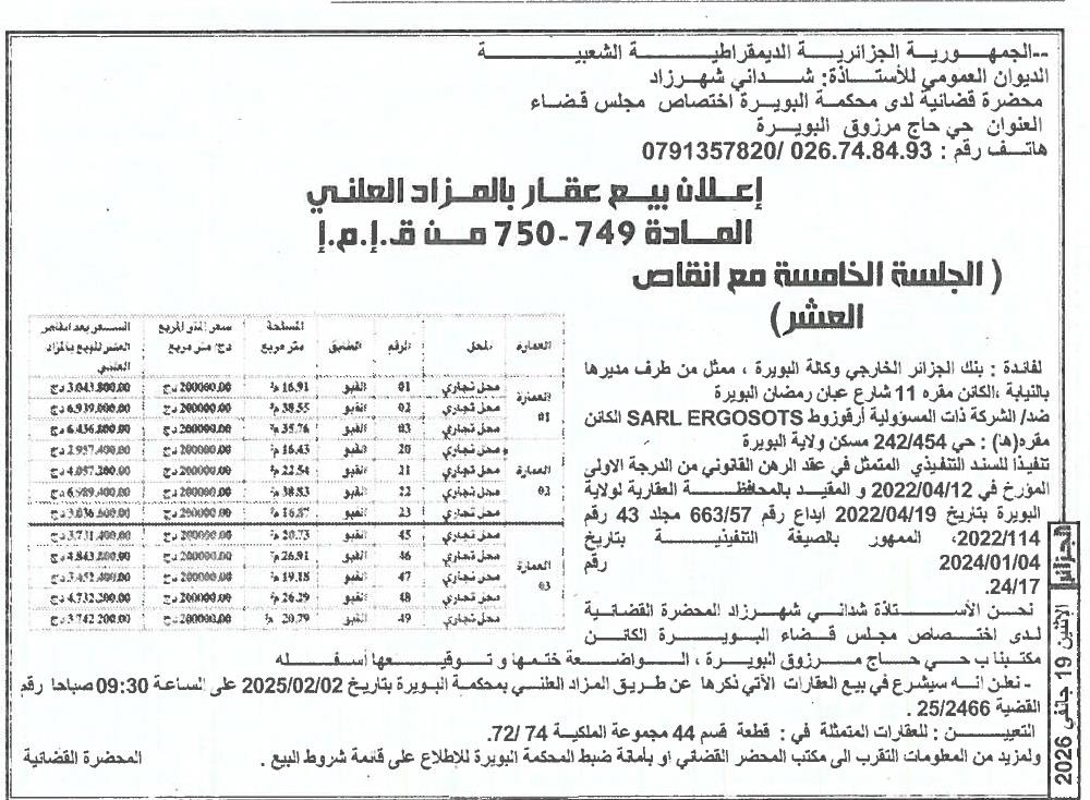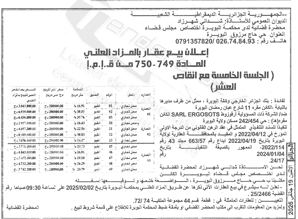 Il sera procédé à la vente au plus offrant et dernier enchérisseur le :