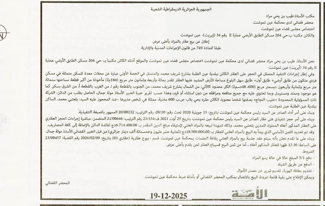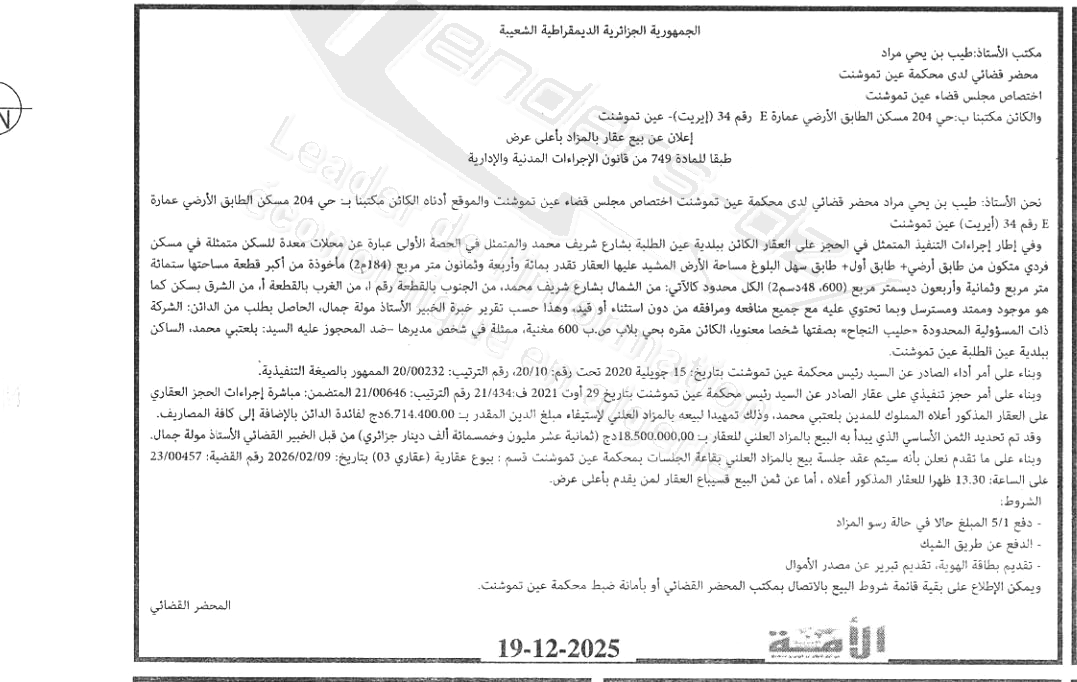 | Objet: Vente d'un immobilier | |