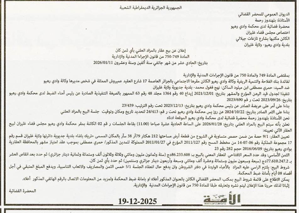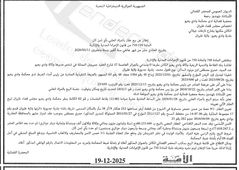 Il sera procédé à la vente au plus offrant et dernier enchérisseur le :