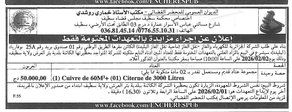 Il sera procédé à la vente au plus offrant et dernier enchérisseur le :