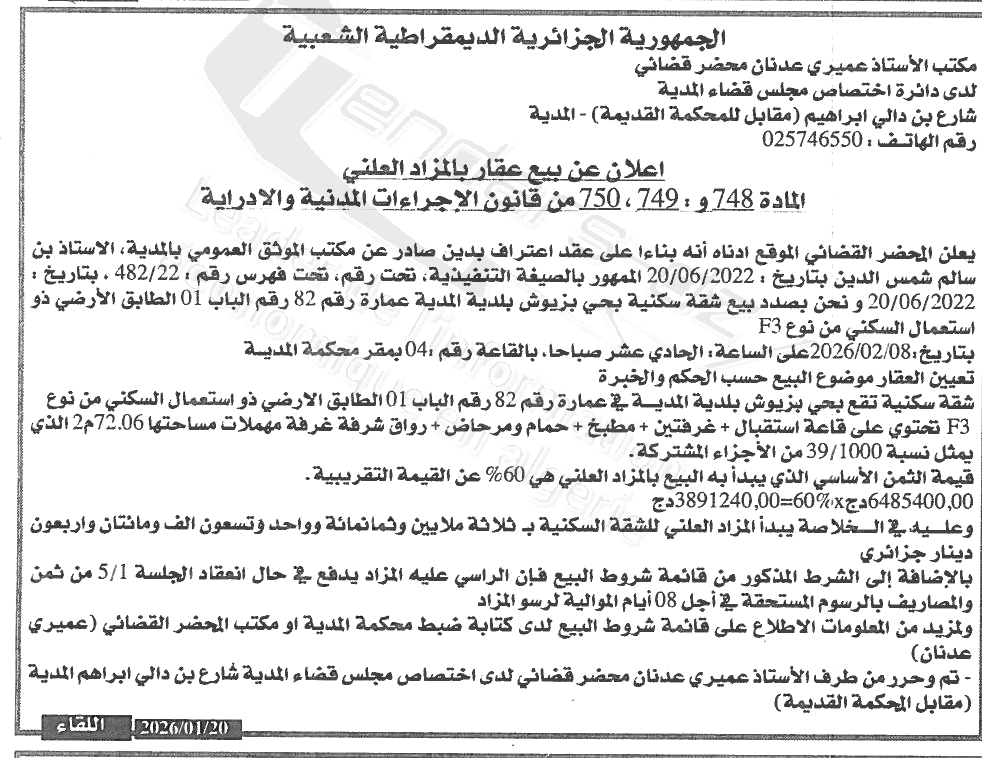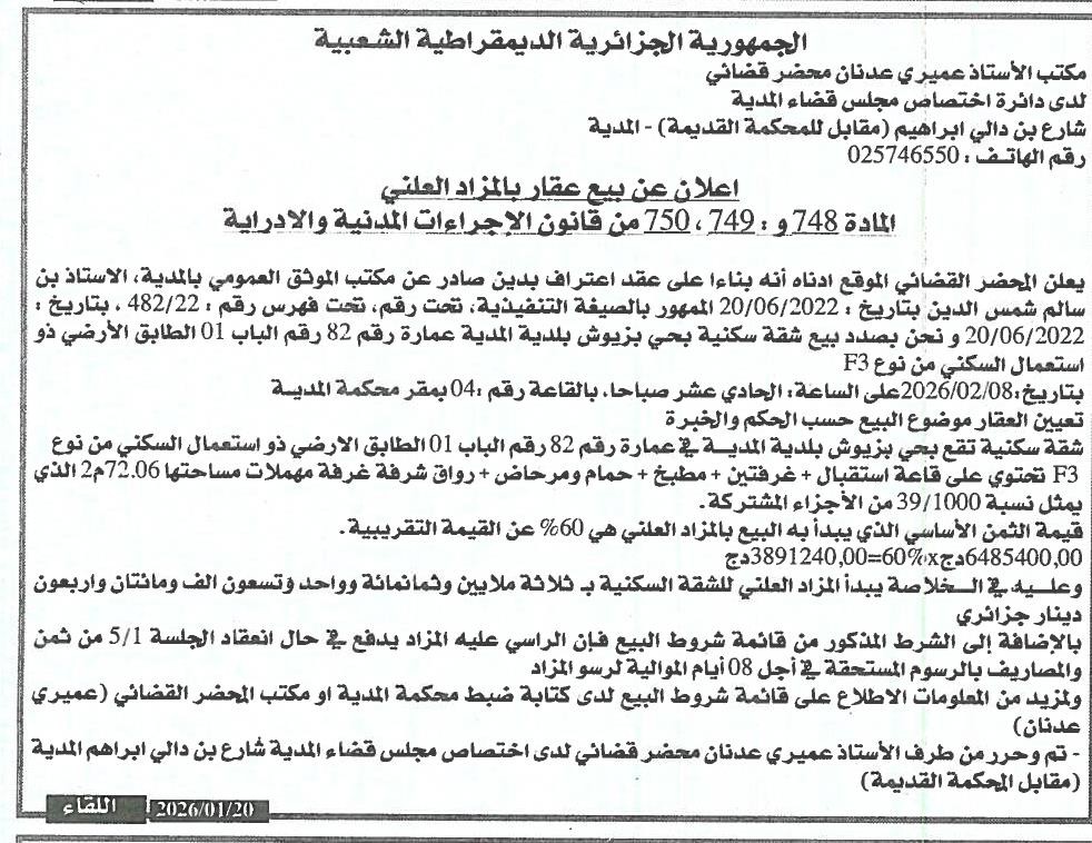 Il sera procédé à la vente au plus offrant et dernier enchérisseur le :