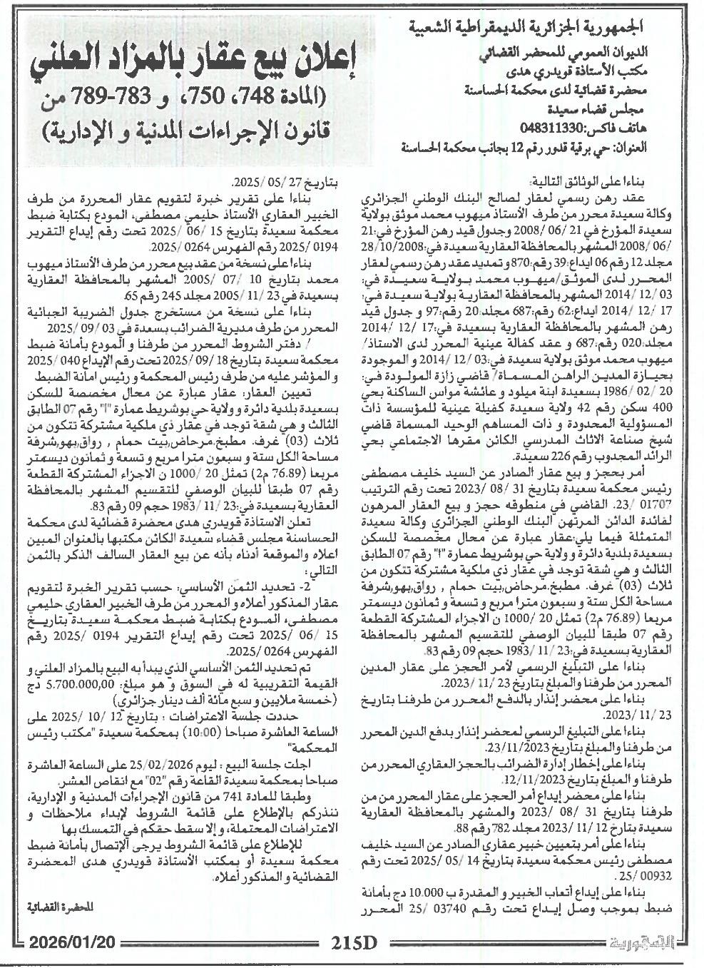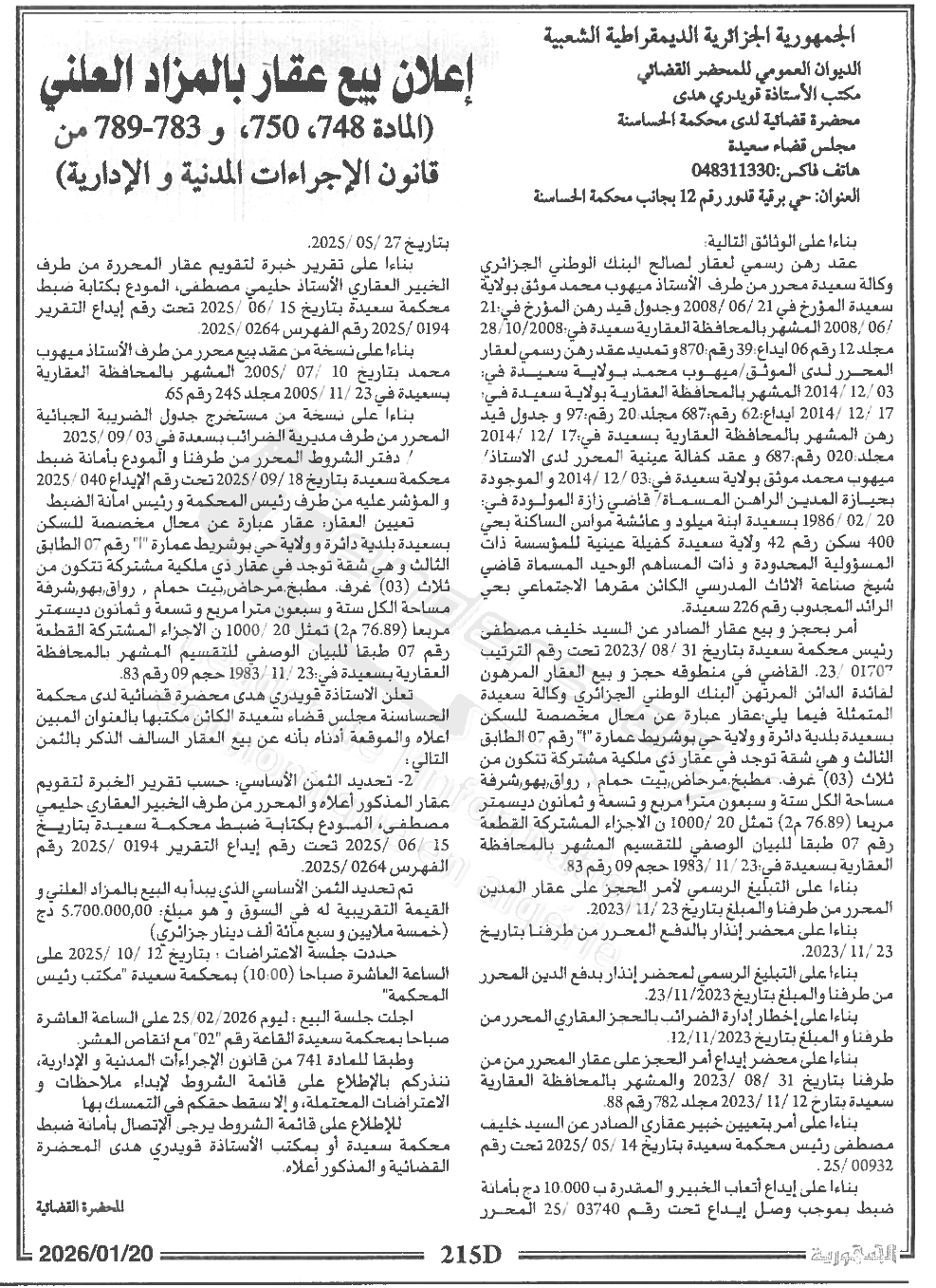 Il sera procédé à la vente au plus offrant et dernier enchérisseur le :