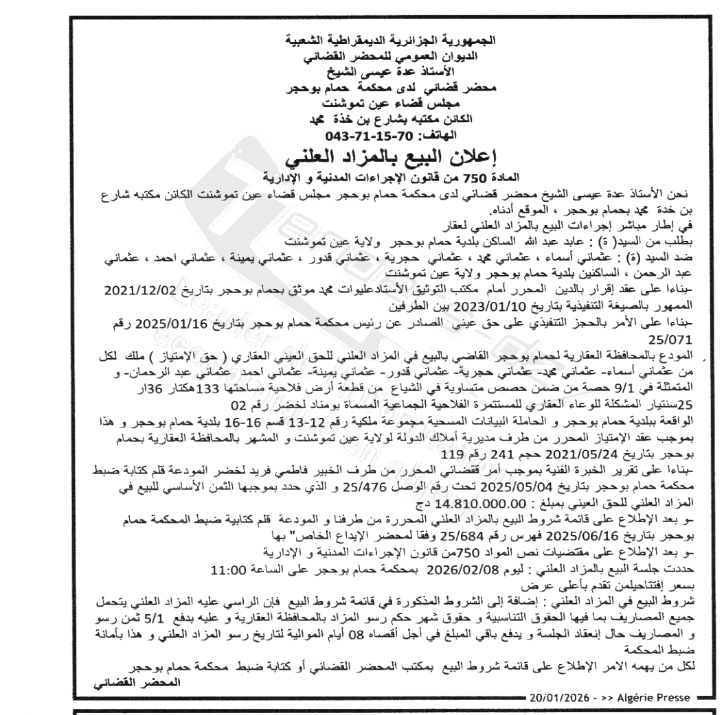 | Date Publication : 20/01/2026 | |