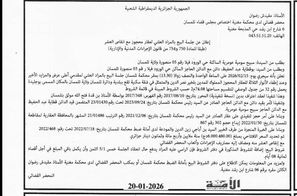 | Paru dans le journal : الامة العربية | |