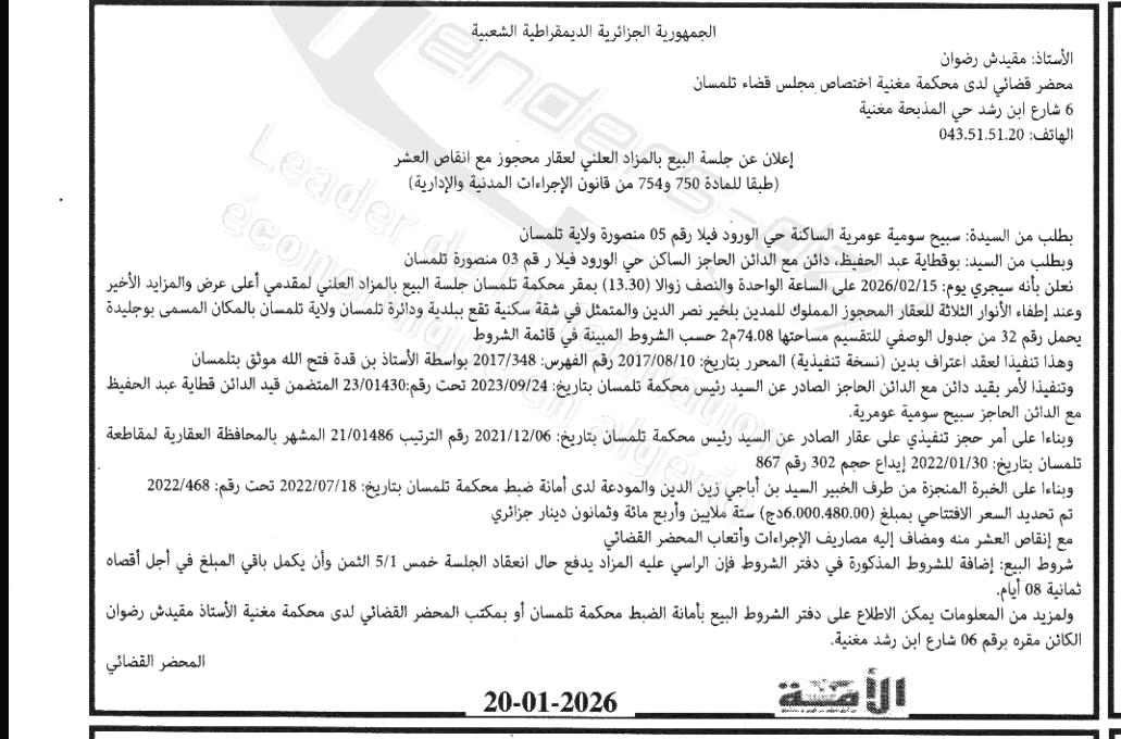 | Wilaya : Tlemcen | |