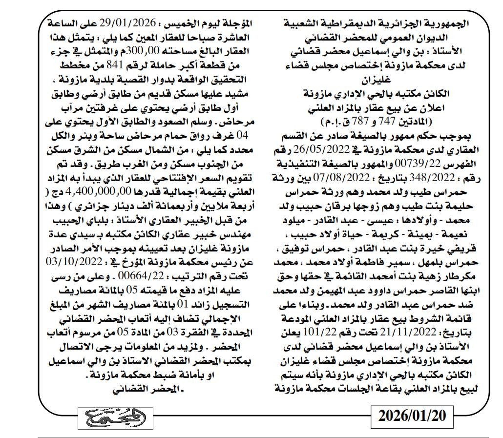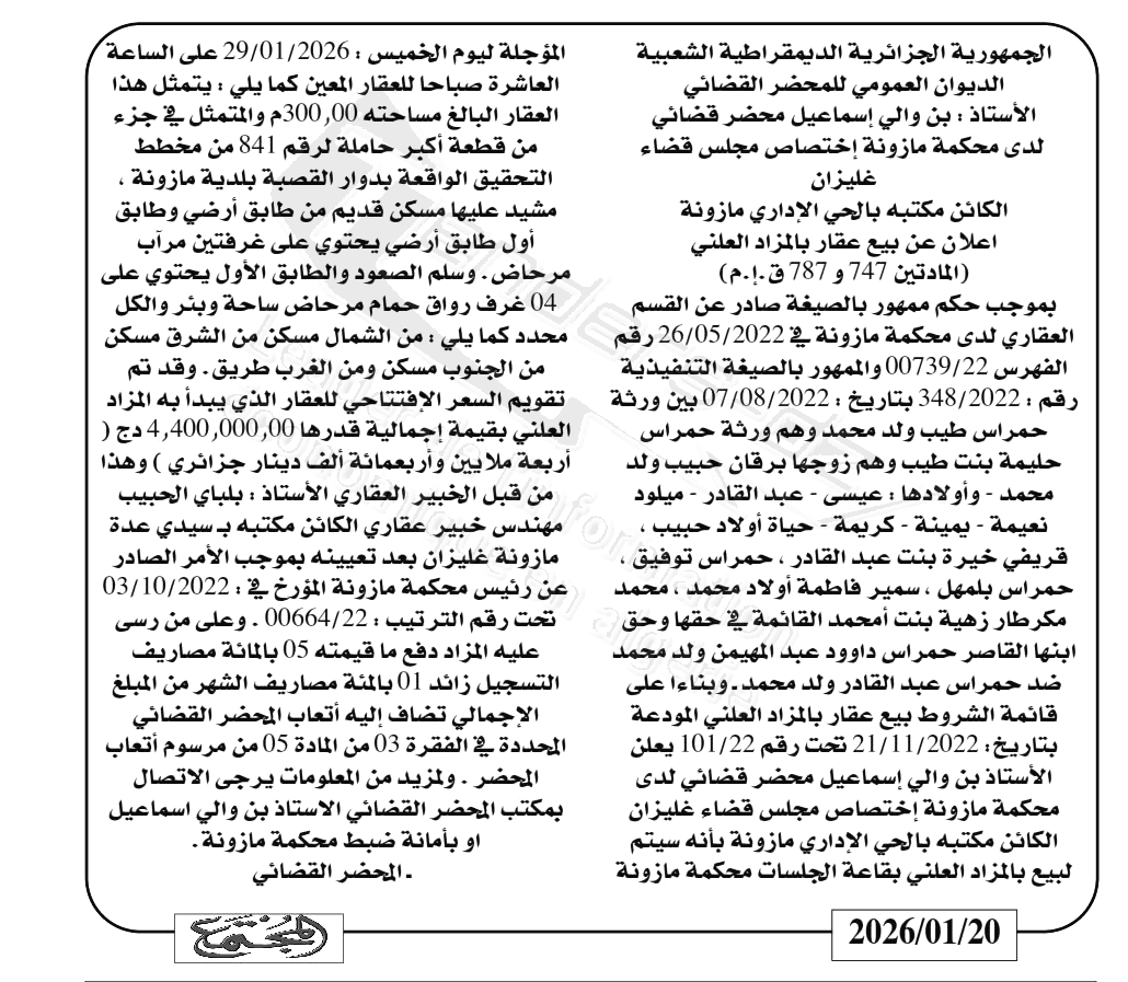 Il sera procédé à la vente au plus offrant et dernier enchérisseur le :