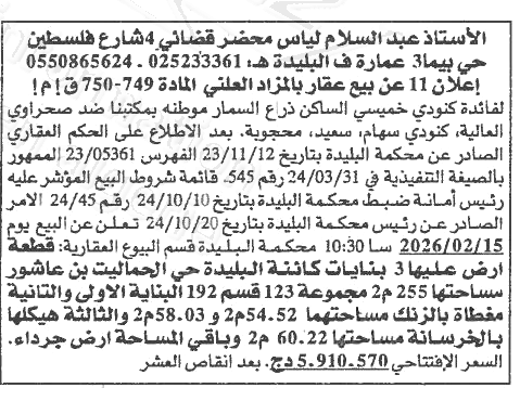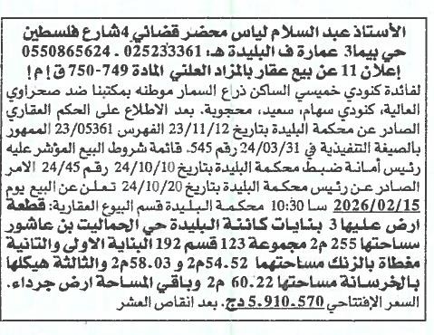 Il sera procédé à la vente au plus offrant et dernier enchérisseur le :