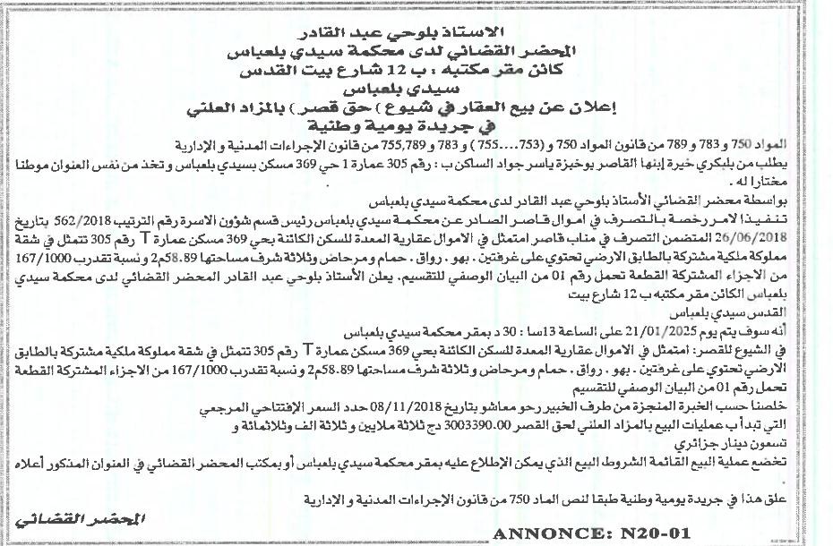 | Objet: Vente d'un immobiliers | |
