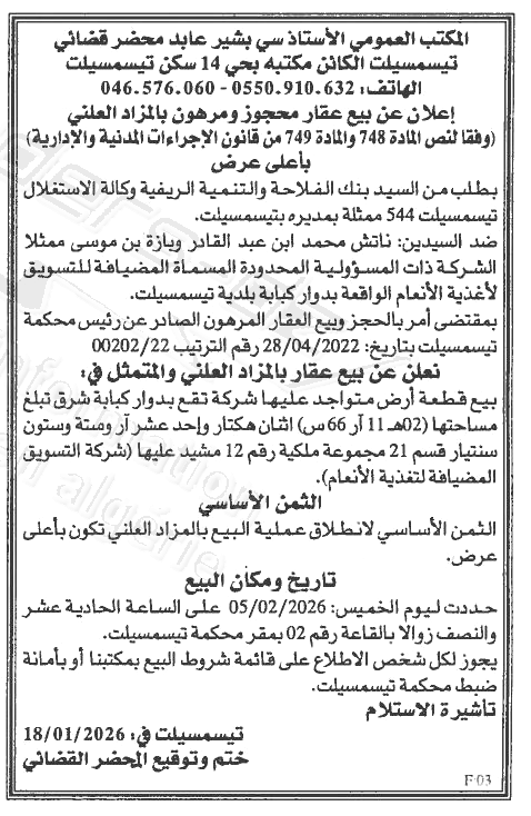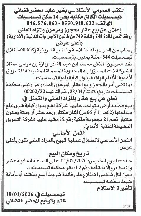 Il sera procédé à la vente au plus offrant et dernier enchérisseur le :