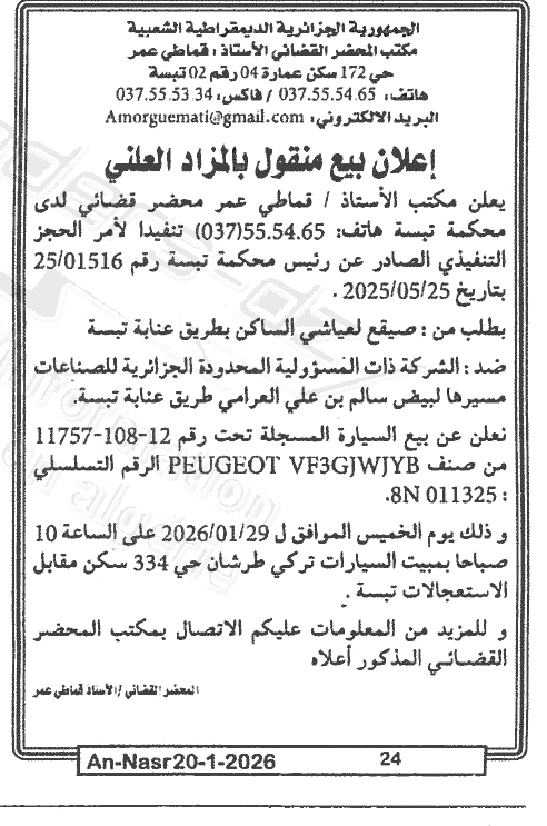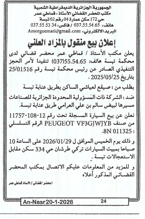 Il sera procédé à la vente au plus offrant et dernier enchérisseur le :