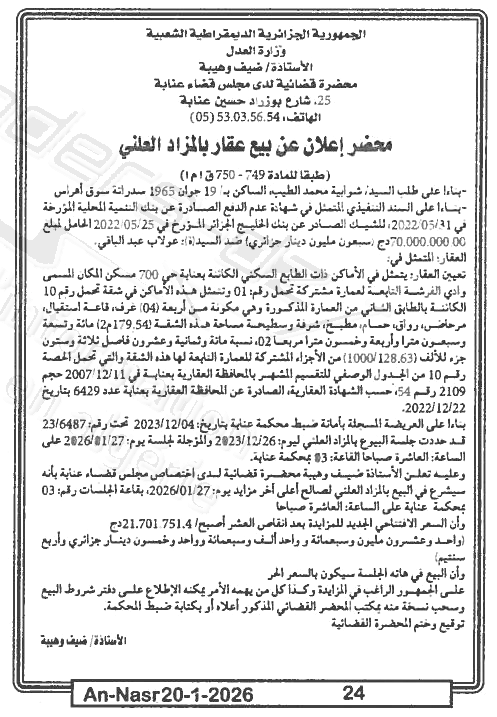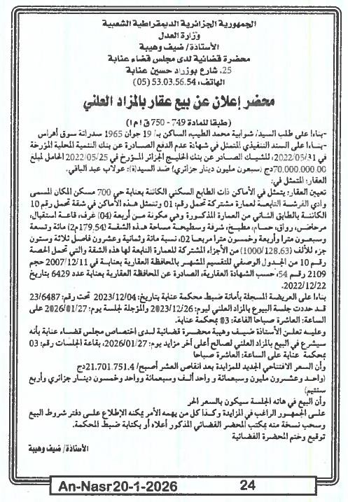 Il sera procédé à la vente au plus offrant et dernier enchérisseur le :