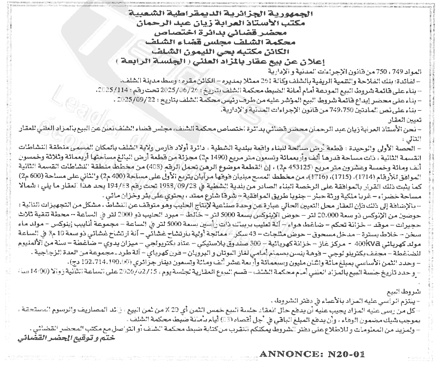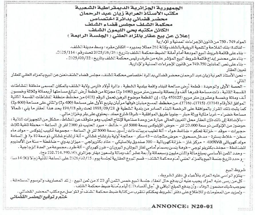 Il sera procédé à la vente au plus offrant et dernier enchérisseur le :