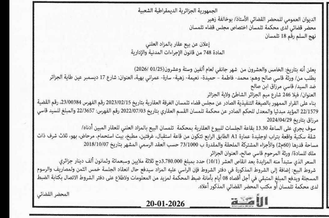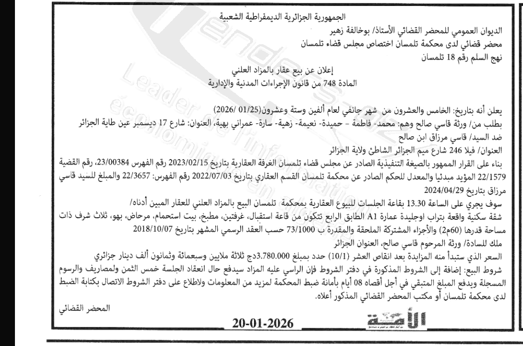 Il sera procédé à la vente au plus offrant et dernier enchérisseur le :