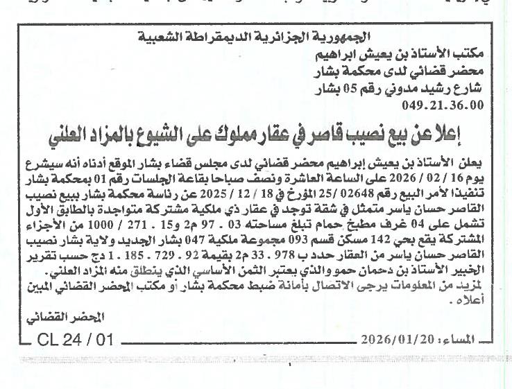 Il sera procédé à la vente au plus offrant et dernier enchérisseur le :