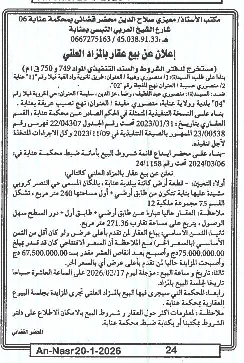 | Paru dans le journal : النصر | |