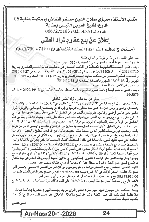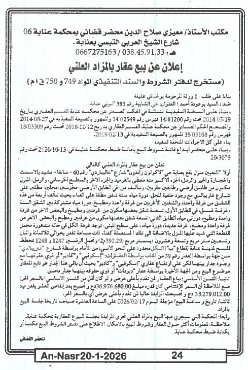 Il sera procédé à la vente au plus offrant et dernier enchérisseur le :