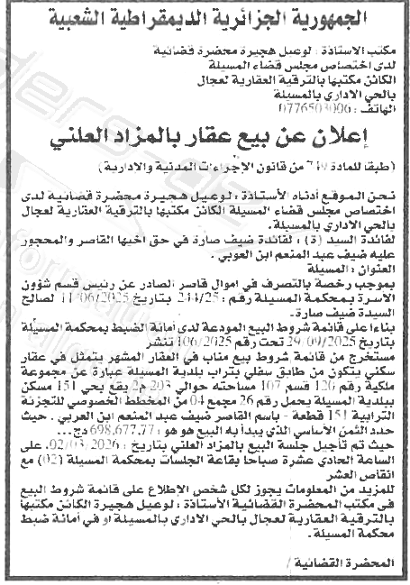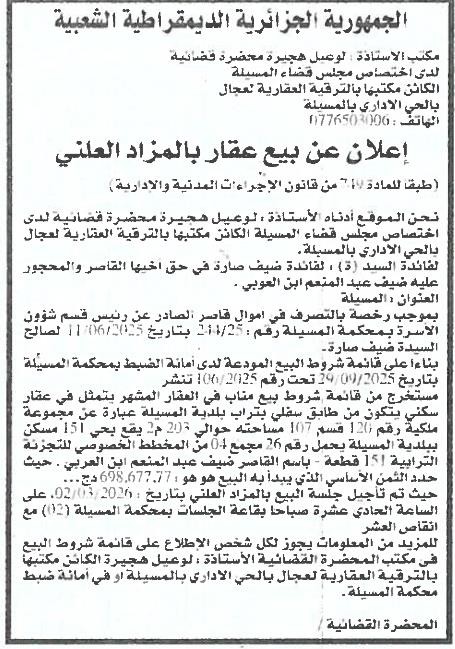 | Wilaya : MSila | |