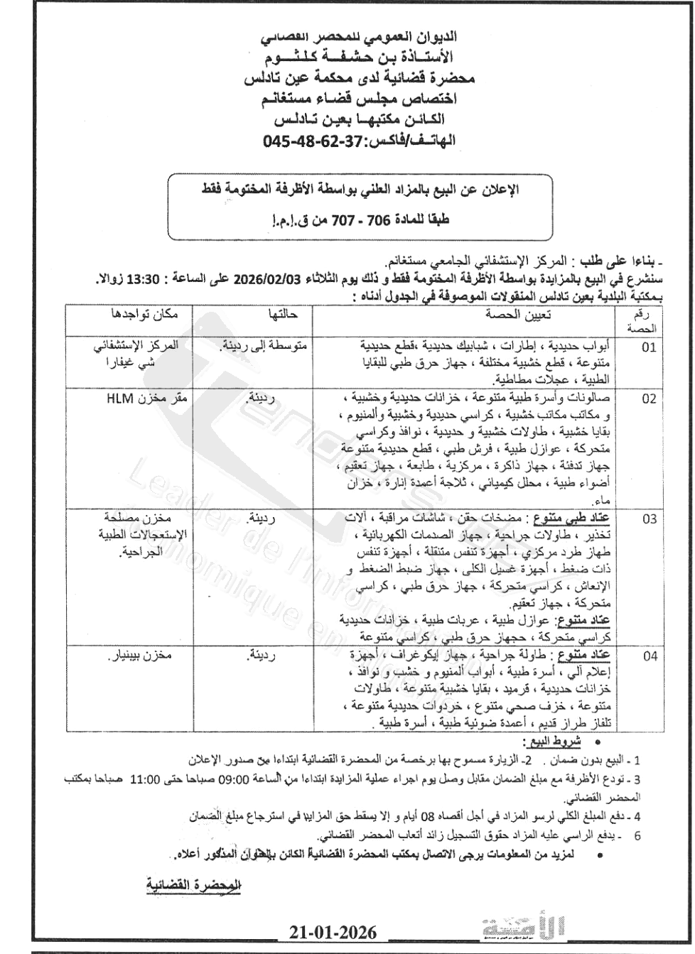 Il sera procédé à la vente au plus offrant et dernier enchérisseur le :