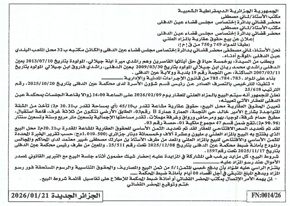 Il sera procédé à la vente au plus offrant et dernier enchérisseur le :