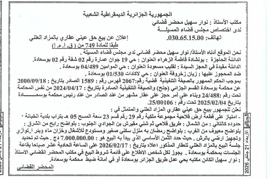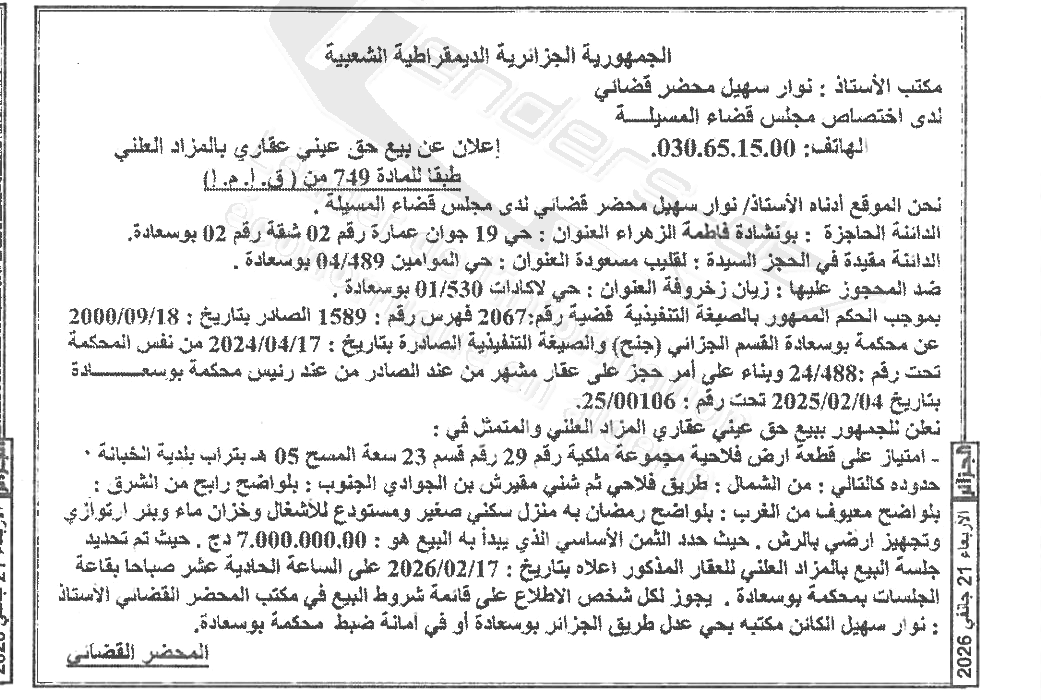 Il sera procédé à la vente au plus offrant et dernier enchérisseur le :