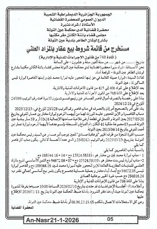 Il sera procédé à la vente au plus offrant et dernier enchérisseur le :